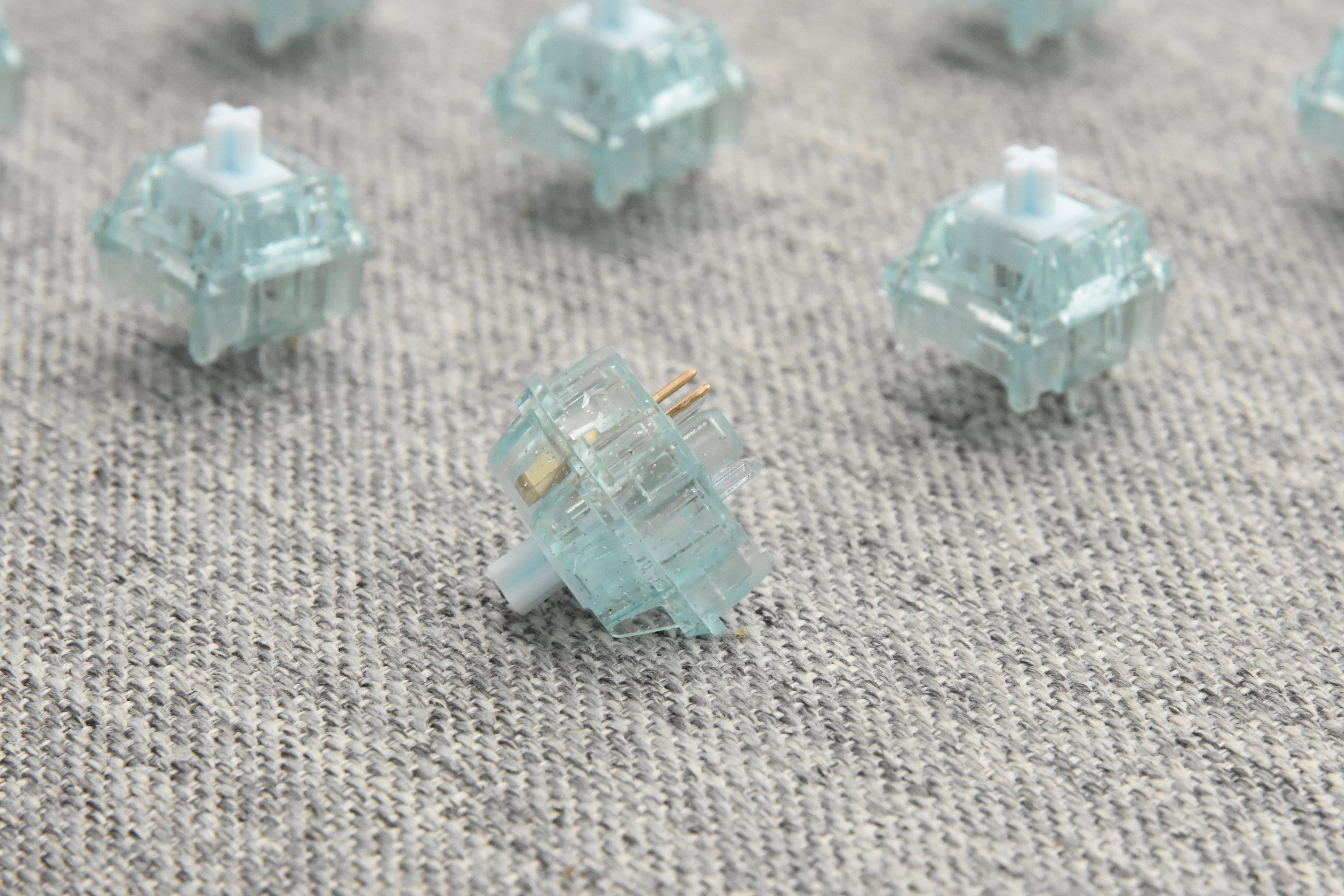 This is the Su Color R2 BLUE switches. They come with improved factory lubing and leaves. Leaf ticks and unwanted noises no longer exist. HMX Su color is the second switch designed by WJBY studio, and it is the first HMX switch with a full PA12 housing. When paired with the T5 stem, it has a subtle and relatively deep clack sound. The T series stem is the go-to option at HMX if a deeper switch needs to be made, and among them, the T5 comes with the deepest sound signature. However, you know what HMX's "deep" sounding switches are like. They are only relatively deeper than other HMX switches, but you won't be disappointed by its iconic solid bottom out and sound. The X90 in fine packaging options comes with the metal switch box Spring: 22mm Single-Stage KOS stainless steel extended spring Factory Lubed: Yes! mixed GPL105&GPL205 on leaf spring, stem feet, and bottom housing rails. Dry film lube on springs