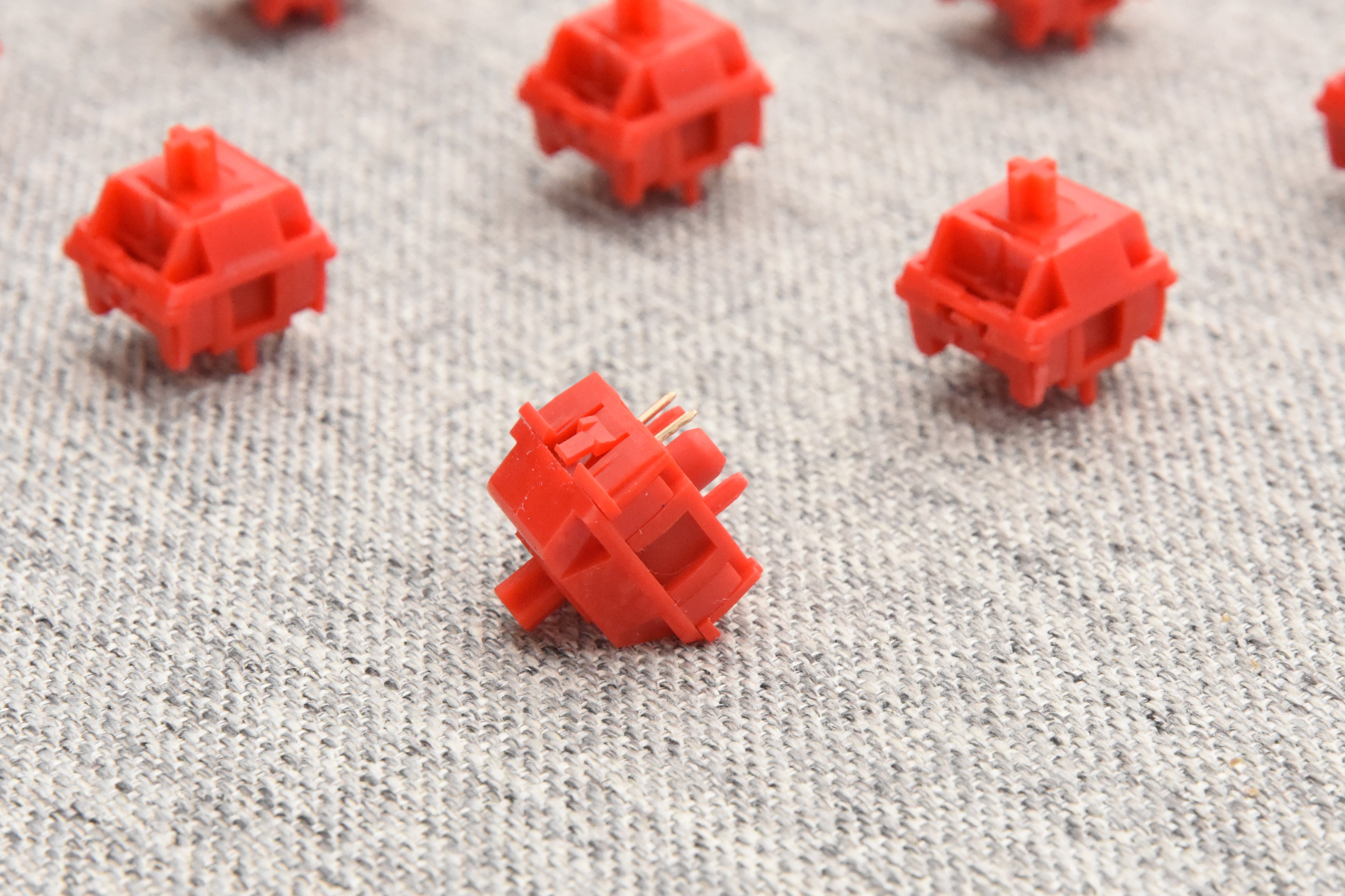 The HMX TT Red switches are manufactured using HMX's new mold set. If you are looking for another clacky HMX switch, you have come to the right place. The new molding design makes them sound clacky, high-pitched, and full at the same time. The PA12 top housing and POM stem ensure its smoothness and a quieter top-out sound. Unlike most HMX switches, which use nylon bottom housing with fiberglass, TT Red has a pure PA66 bottom housing instead. It might make them slightly less clacky and loud, but it helps the switch to sound less thin. Factory Lubed: Yes! mixed GPL105&GPL205 on leaf spring, stem feet, and bottom housing rails.