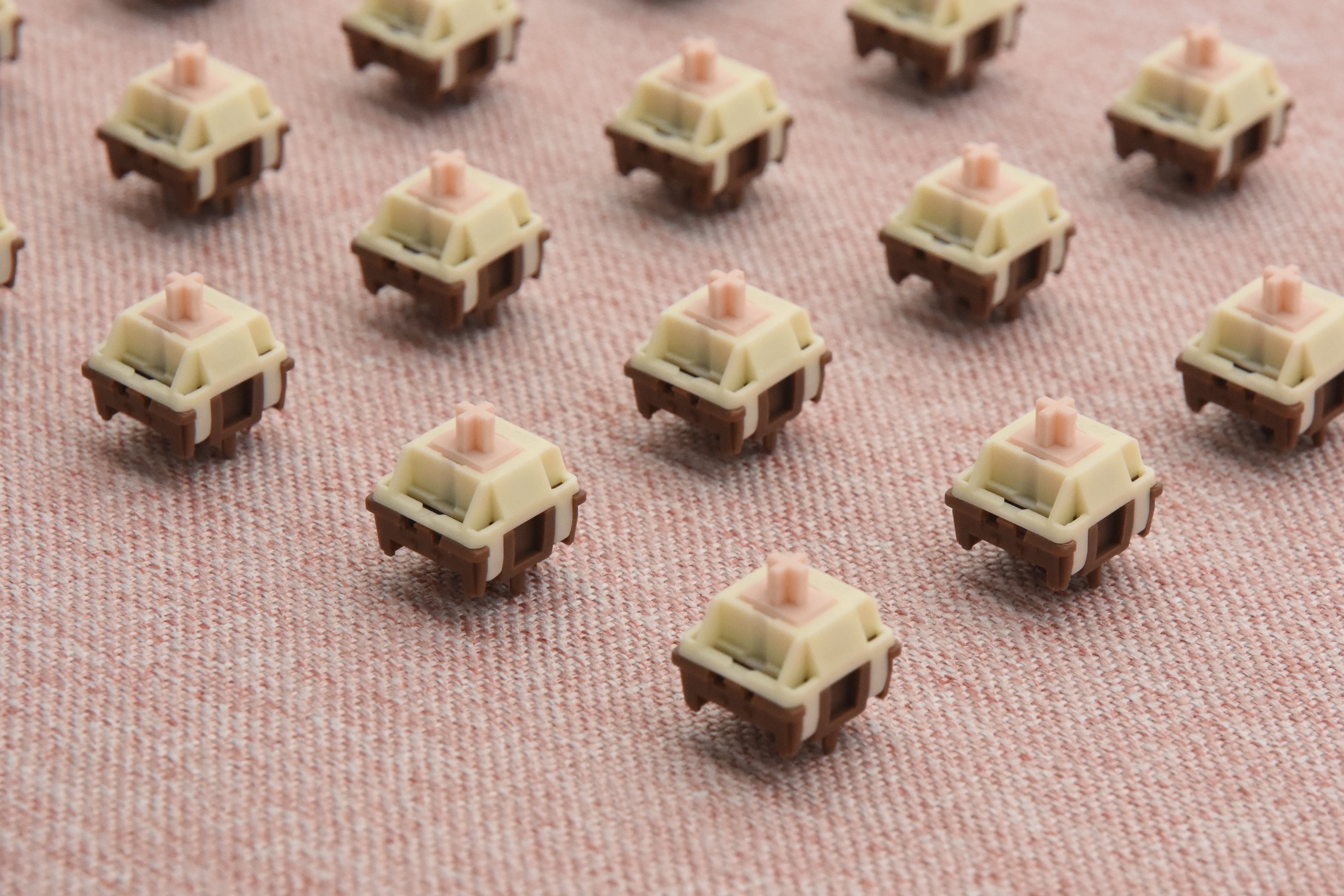 The Poro switches look cute and yummy, and it is one of the main reasons that we decided to stock them (LOL). Material-wise, Poro switches are similar to the Swift switches. You can consider them to be a re-color. Although they have different bottom housing materials, I doubt that is going to make a huge difference. However, Poro switches do have a shorter travel than the Swift switches. Please choose between these two according to your own preference. Spring: 22mm Single-Stage KOS stainless steel extended spring Factory Lubed: Yes! mixed GPL105&GPL205 on leaf spring, stem feet, and bottom housing rails. Dry film lube on springs
