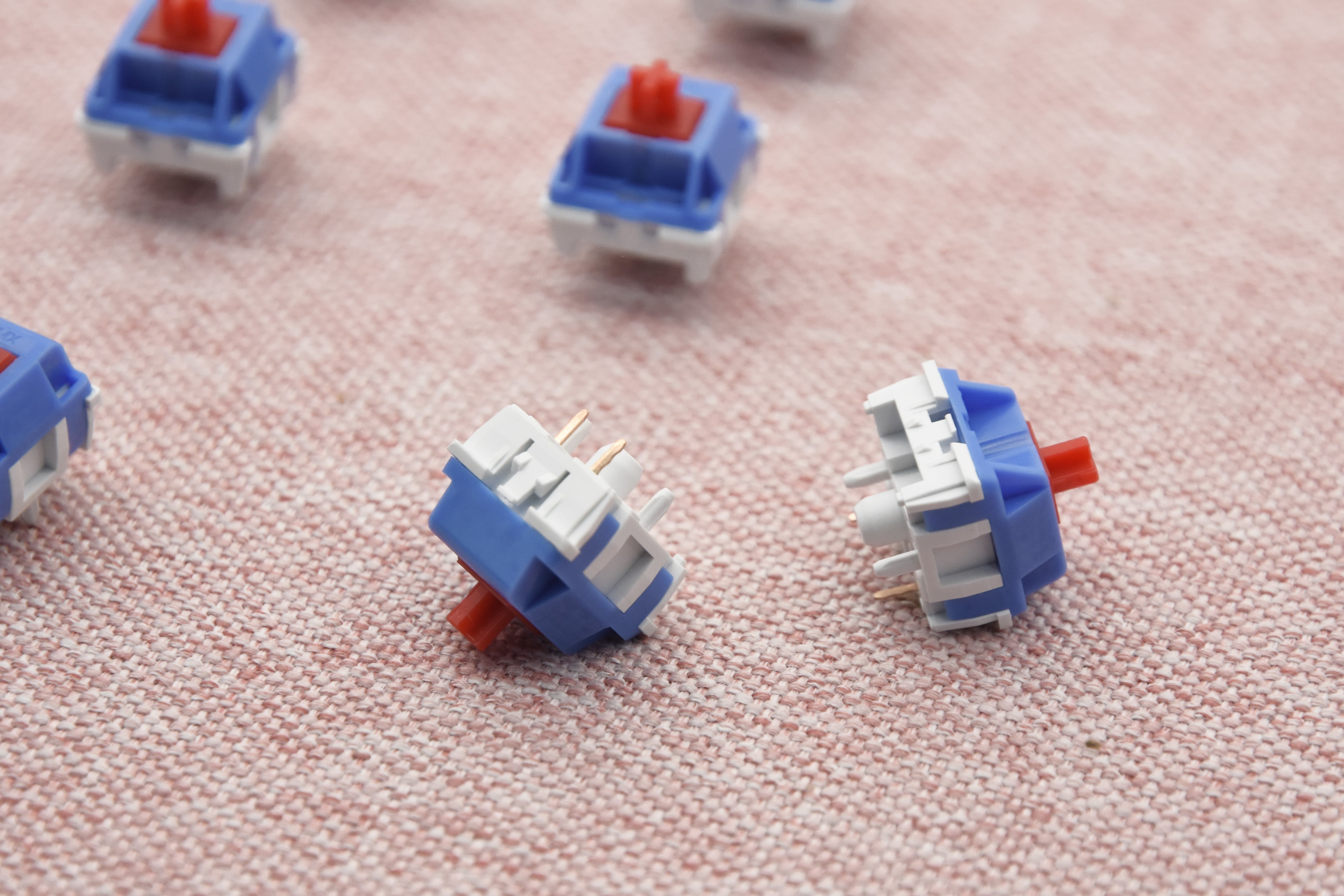 The HMX Martini V2 linear switch is the rail bottom-out version of the Martini switch. They are the first HMX RBO switch that uses a LY material stem with a PA-2 bottom housing, which is the combination you see on HMX Cheese switches. However, don't expect them to sound as clacky as Cheese switches, as the rail bottoming out stem drasticly changes the overall sound profile, even if the materials are the same. Factory lubing: Martini V2 switches are lubed using the same method as Snow Crash switches; only the leaves and springs are factory-lubed. Leaves are lubed with a thin coat of 205g0 and 105g0 mix, and springs are lubed with dry-film. The stem, bottom housing, and top housing are all dry.