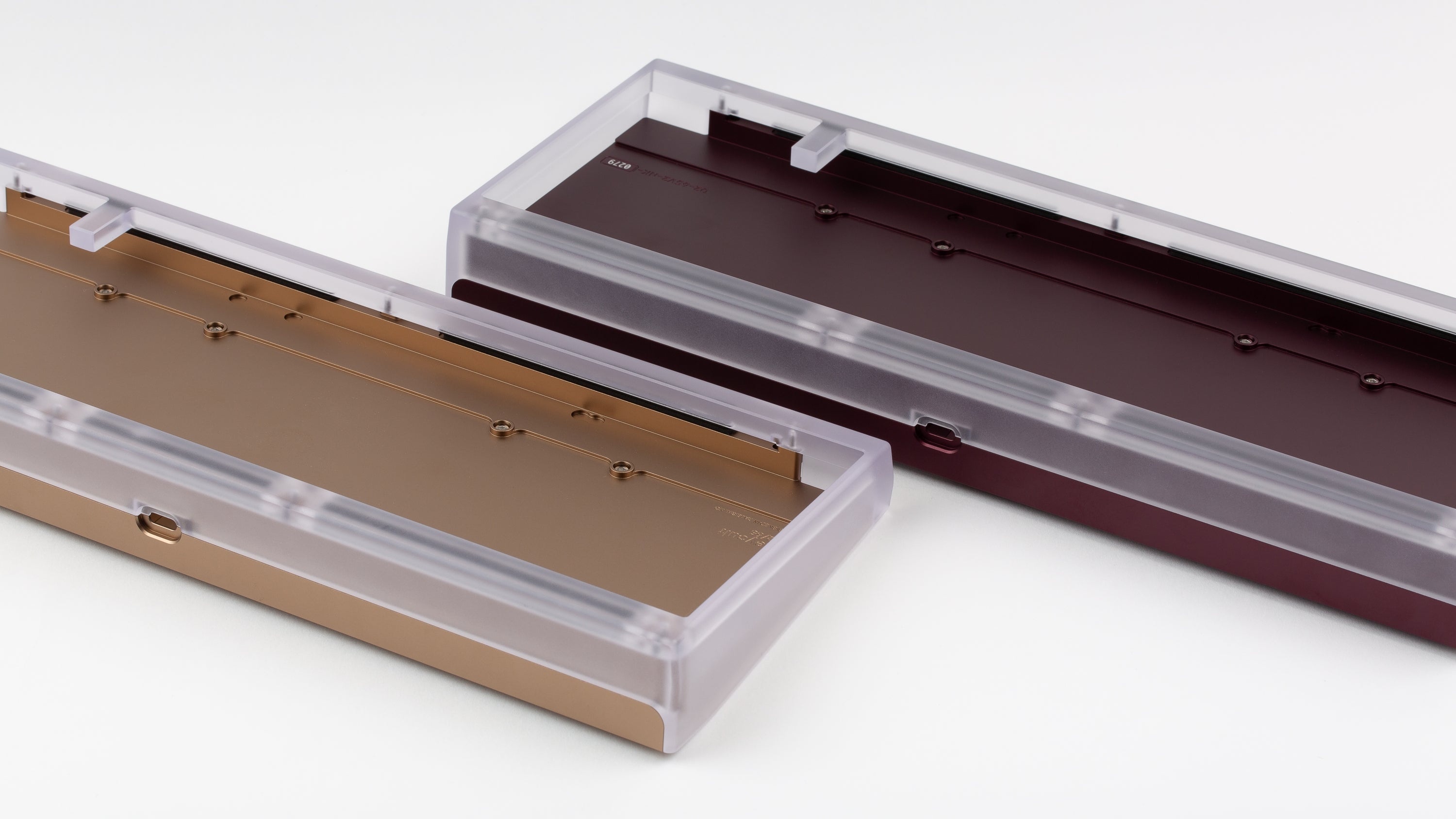 Details: Acceptible Quality Standards: Aluminum Portions There should be no scuffs or scratches on the case top, sides, or bottom. There may be a few small but potentially noticeable spots or scratches on the inside faces of the cases There may be minor machining/tooling marks on internal faces. There may be scratches, scuffs, pitting, or anodization blemishes on case internals. No defects should be visible when kit is fully assembled and being used. Polycarbonate Portions Polycarbonate can and will scratch/scuff very easily - even from just removing the case from the packaging. Please treat with care. Minor scuffs/scrapes can be buffed out. There may be a few small but potentially noticeable spots or scratches on the inside faces of the cases There may be minor machining/tooling marks on internal faces. There may be scratches, scuffs, pitting, or anodization blemishes on case internals. There should be no deep or noticeable scrapes/scuffs once fully assembled. Specifications: Polycarbonate Top CNC Aluminum Mid and Bottom Aluminum Plate Hotswap PCB made by Yiancar Designs