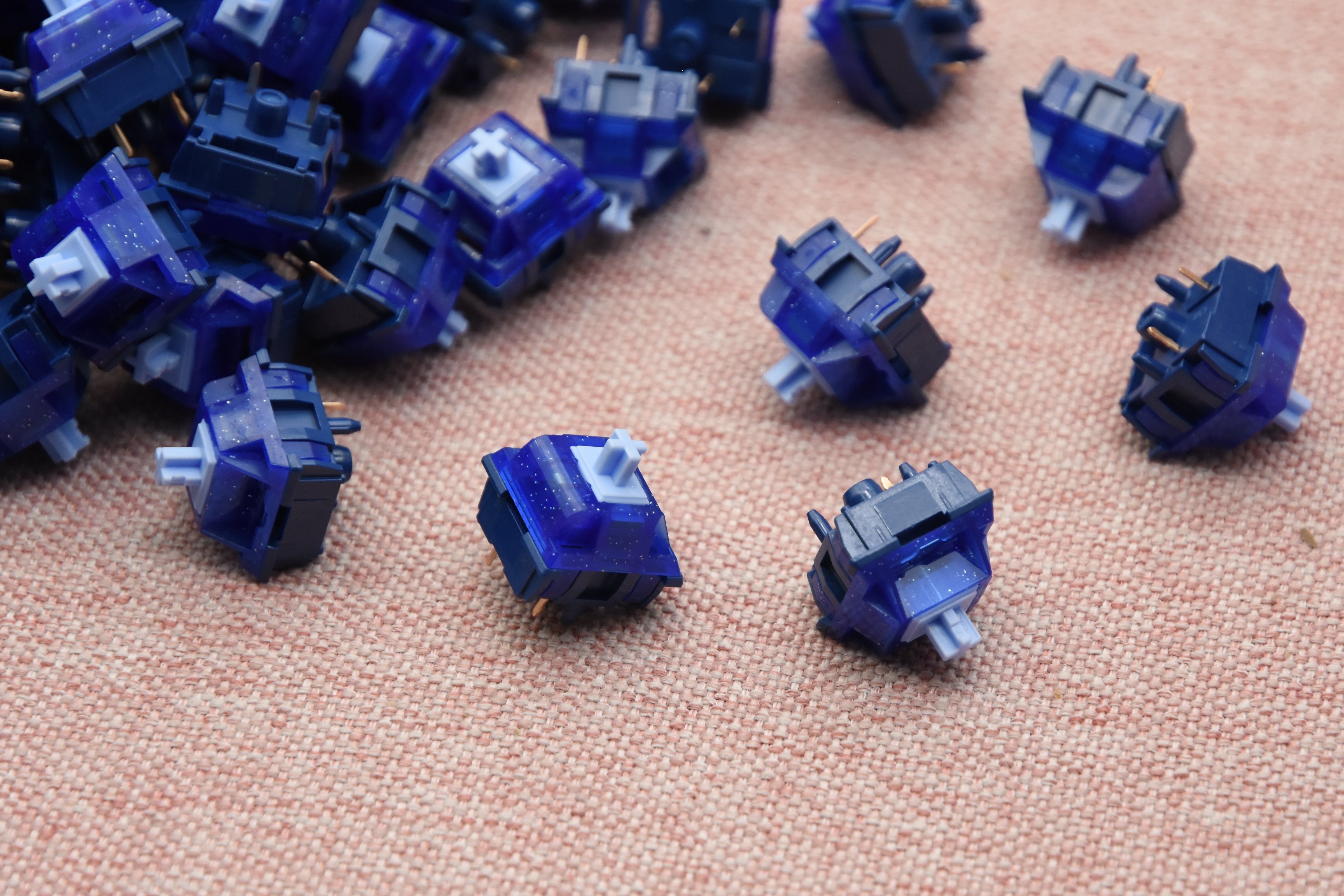 Clacky is no longer a good word to describe how high-pitched and loud these switches are. For the Keygeek switches that use the P bottom housing, including Roxy, of course, I personally prefer using the word "metallic" to describe their sound profile. The transparent PC top housing not just look beautiful with glitter, but it also makes the switch feel super smooth overall. It also helps with the top-out sound by making it brighter.