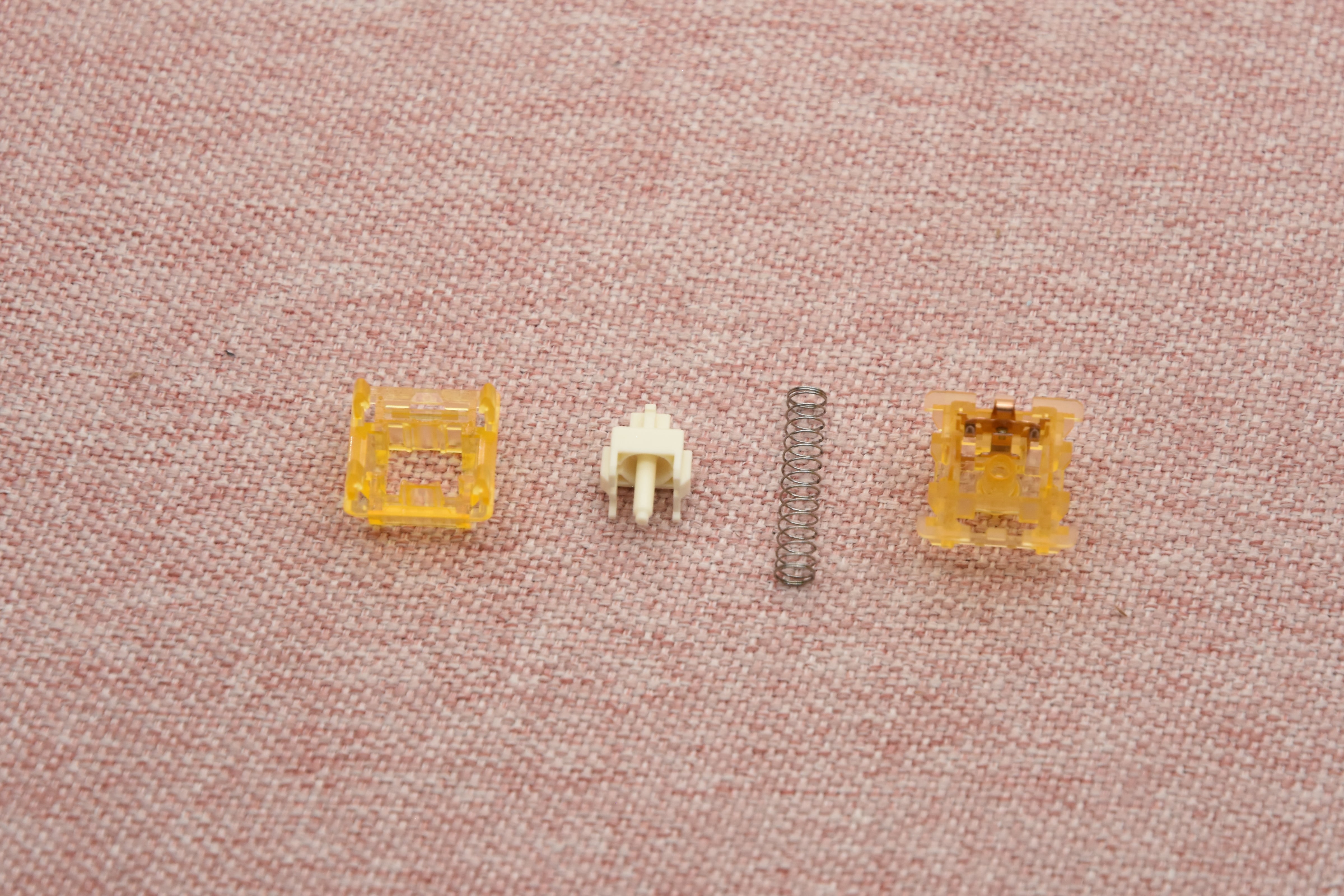 The BSUN Golden Apple switch is the first switch that uses the PEI material. PEI is a high-performance plastic known for its high-temperature resistance, mechanical strength, and electrical insulation properties. When used on a keyboard switch, it not only shows a beautiful golden color, but also provides a firm bottom-out feel and a thocky sound profile.