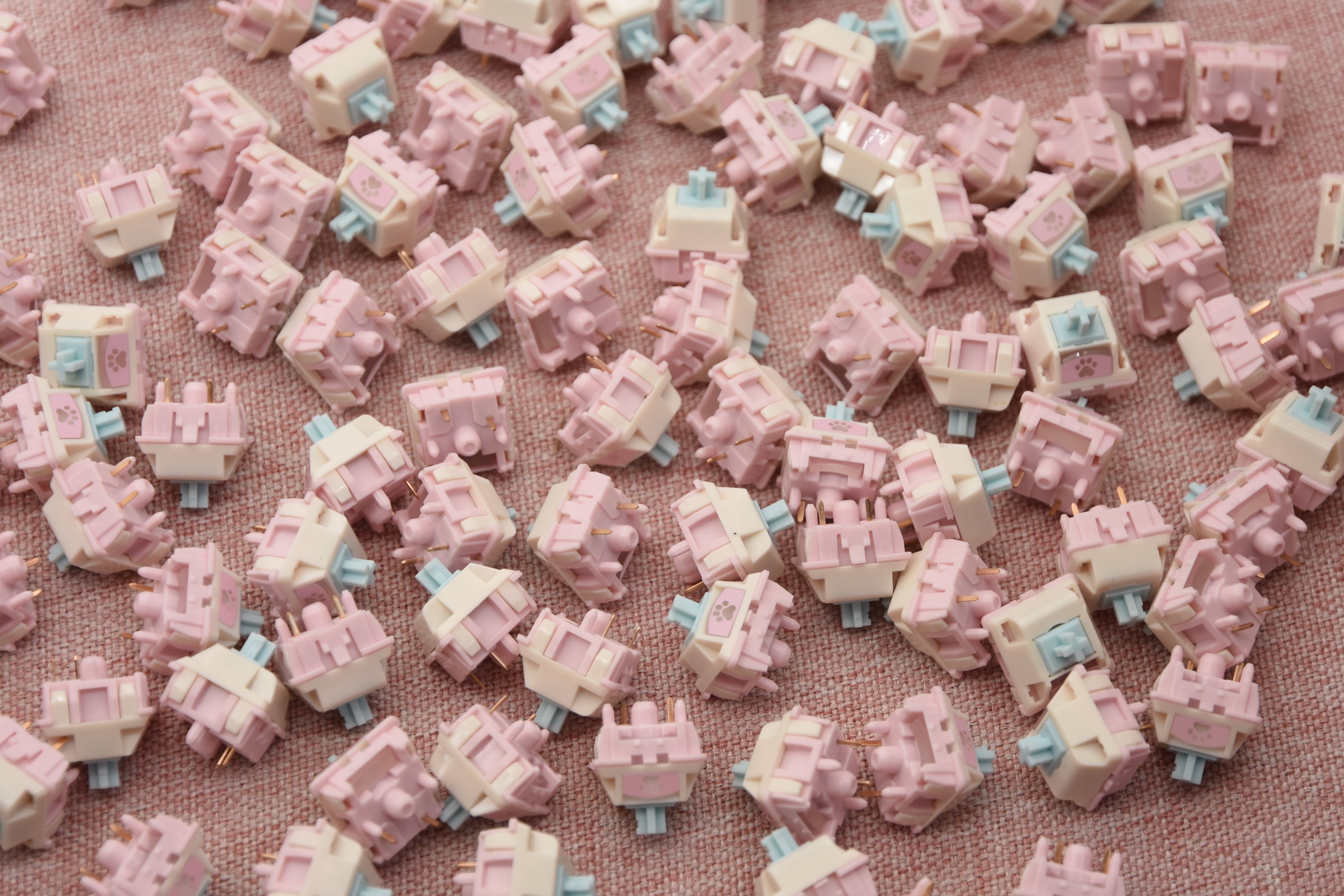 The Kitty linear switch designed by Keylist Studio features a cute kittycat paw light diffuser on the top housing. With transparent keycaps on and RGB under glow, the kittypaws light up and look very adorable. Material-wise, Kitty switches come with an HPE stem and PA66 bottom housing for a thocky and relatively deep sound profile. The HPE stem also ensures each keystroke is smooth and clean. Factory Lubed: Yes! Stem legs and stem sliders are covered with a very thin coat of 205g0. The spring and leaf are lubed with dry film.