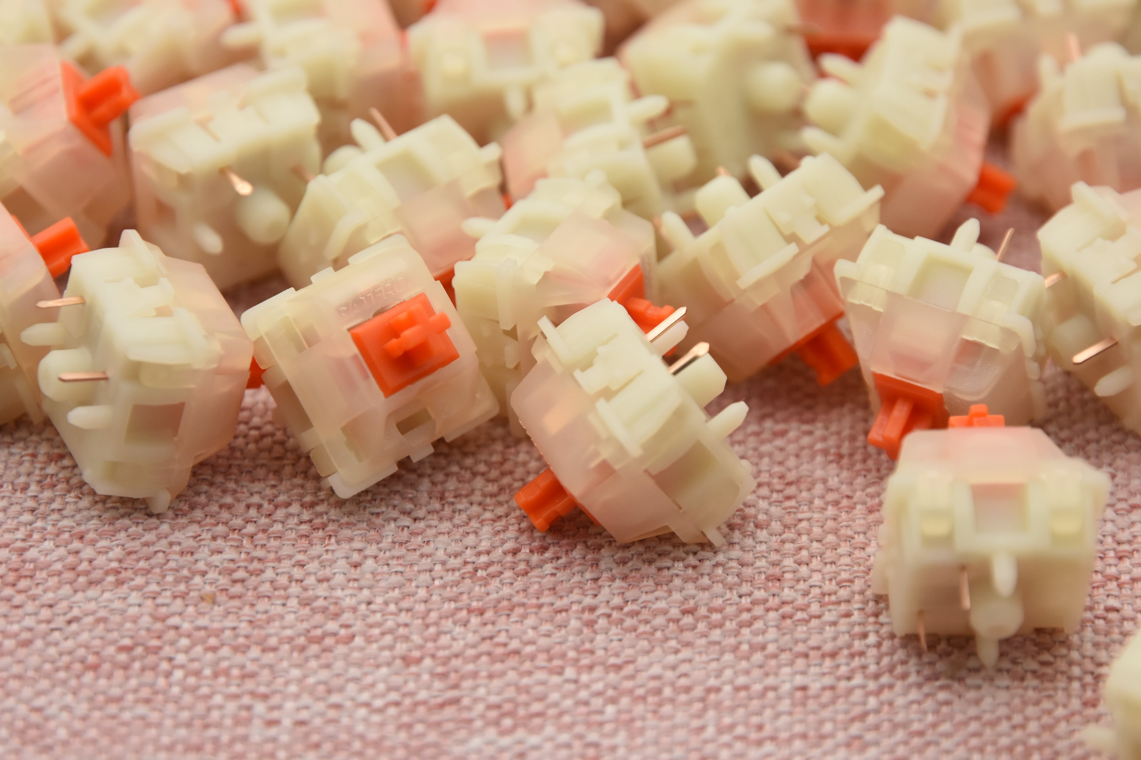 The Gateron + Linear Switch is a rail bottom-out full travel switch. On top of the Gateron classic milky housing and POM stem, Sensy requested Gateron to upgrade the leaf to match modern-day custom keyboards' PCBs, which come with 5ms of delay or less. Furthermore, different from any other factory lubed Gateron switches, the + switch comes with a customized lubing solution: The factory lubed ones come with lubed stem legs, spring, leaf, and top housing contact points only. The stem walls and bottom housing rails are left dry to prevent lube pooling.