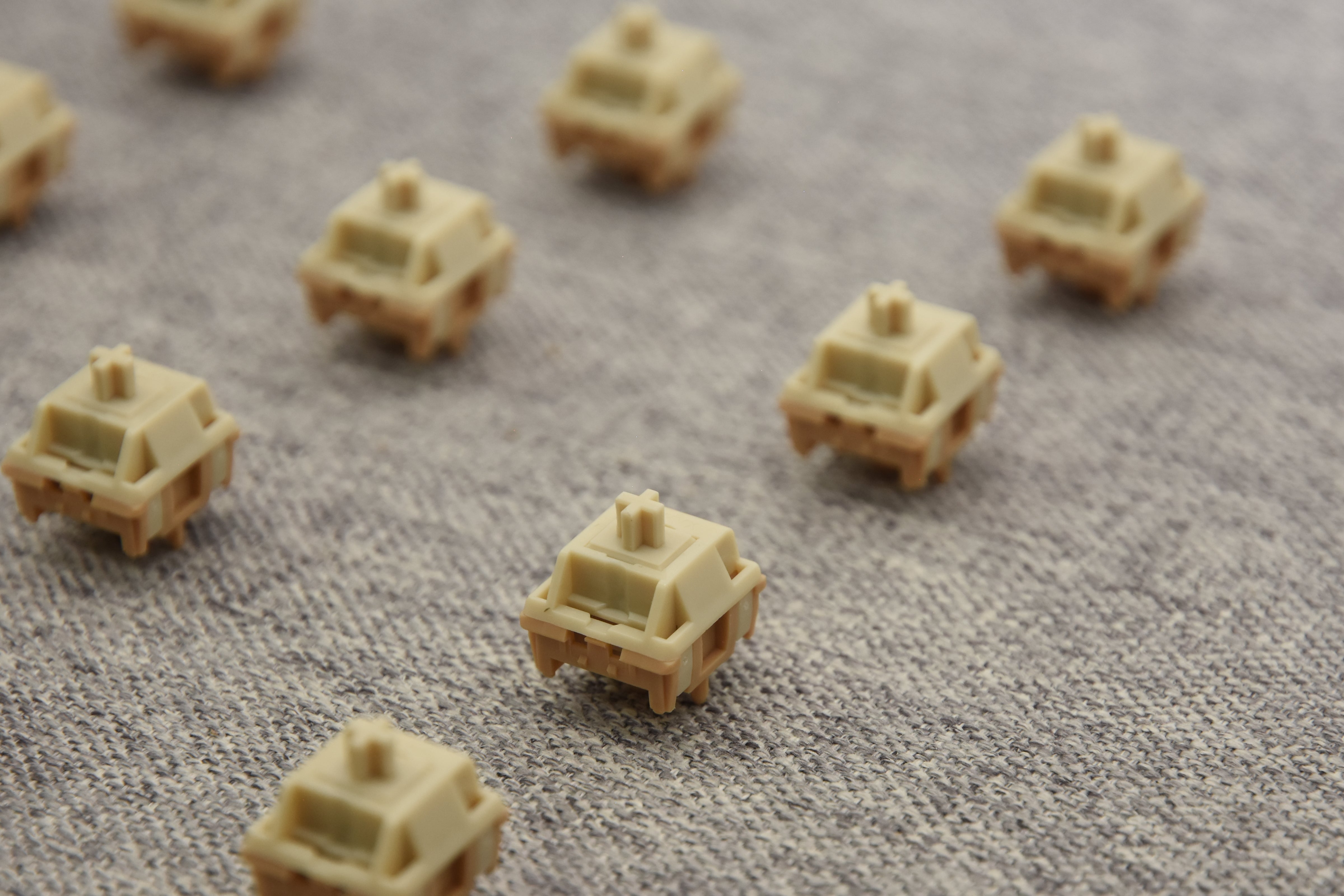 The HMX sandstorm tactile switch is unique in the following aspects: Important to note: When buying X90 or more switches, they will come in our brand-new switch container. Factory Lubed: Yes! Stem legs and stem sliders are covered with a very thin coat of 205g0. The spring and leaf are lubed with 205g0 as well.