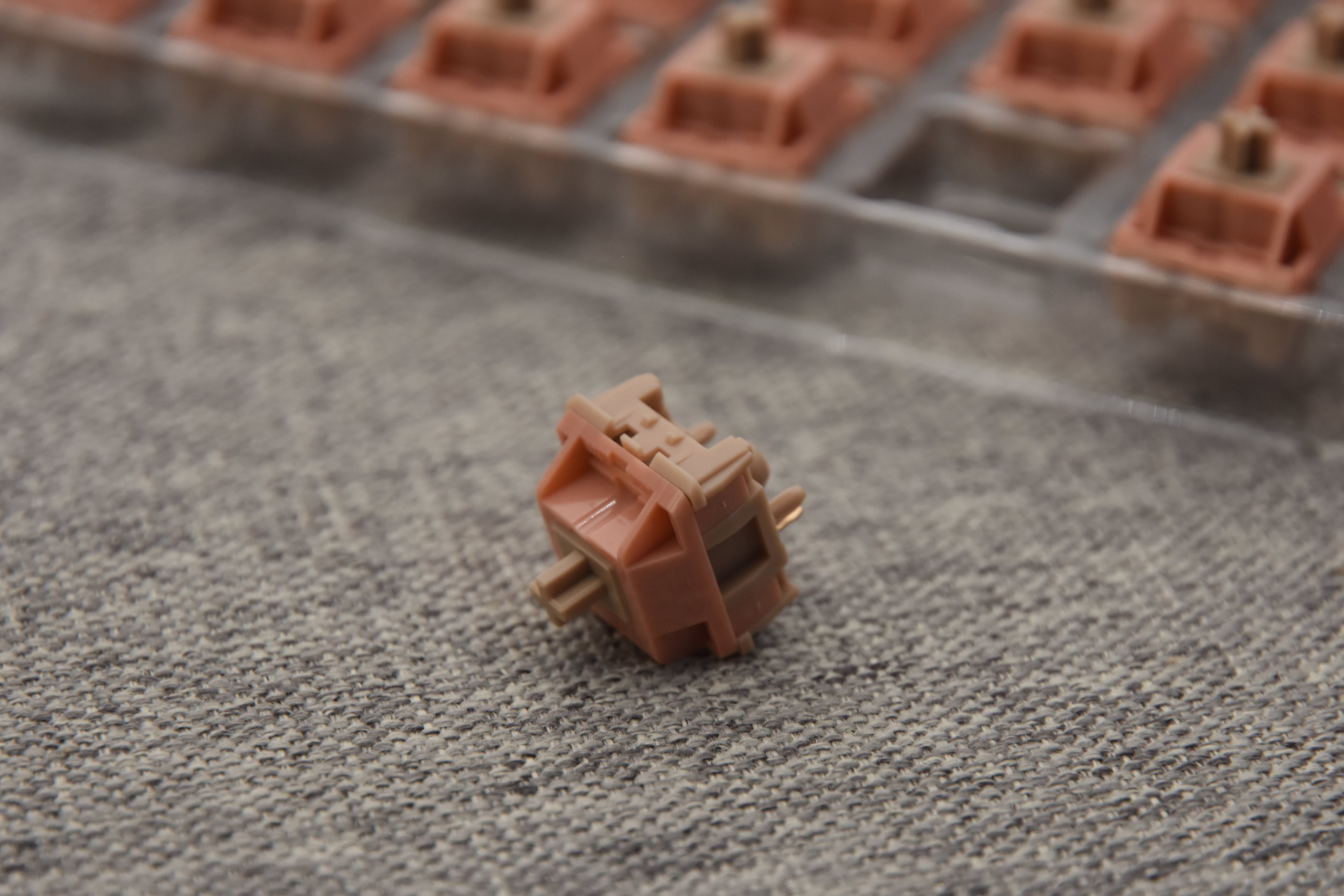 The HMX Retro J Tactile switch features a loud and clacky sound profile. They are manufactured using HMX's newest tactile switch mold, which differentiates them from HMX's previous tactile switches such as Cilantro or Frog tactile switches. The Retro J tactile switch comes with minimal pre and post-travel. The tactile bump is rounded and close to a D shape. Factory Lubed: Yes! Stem legs and stem sliders are covered with a very thin coat of 205g0. The spring and leaf are lubed with dry film.